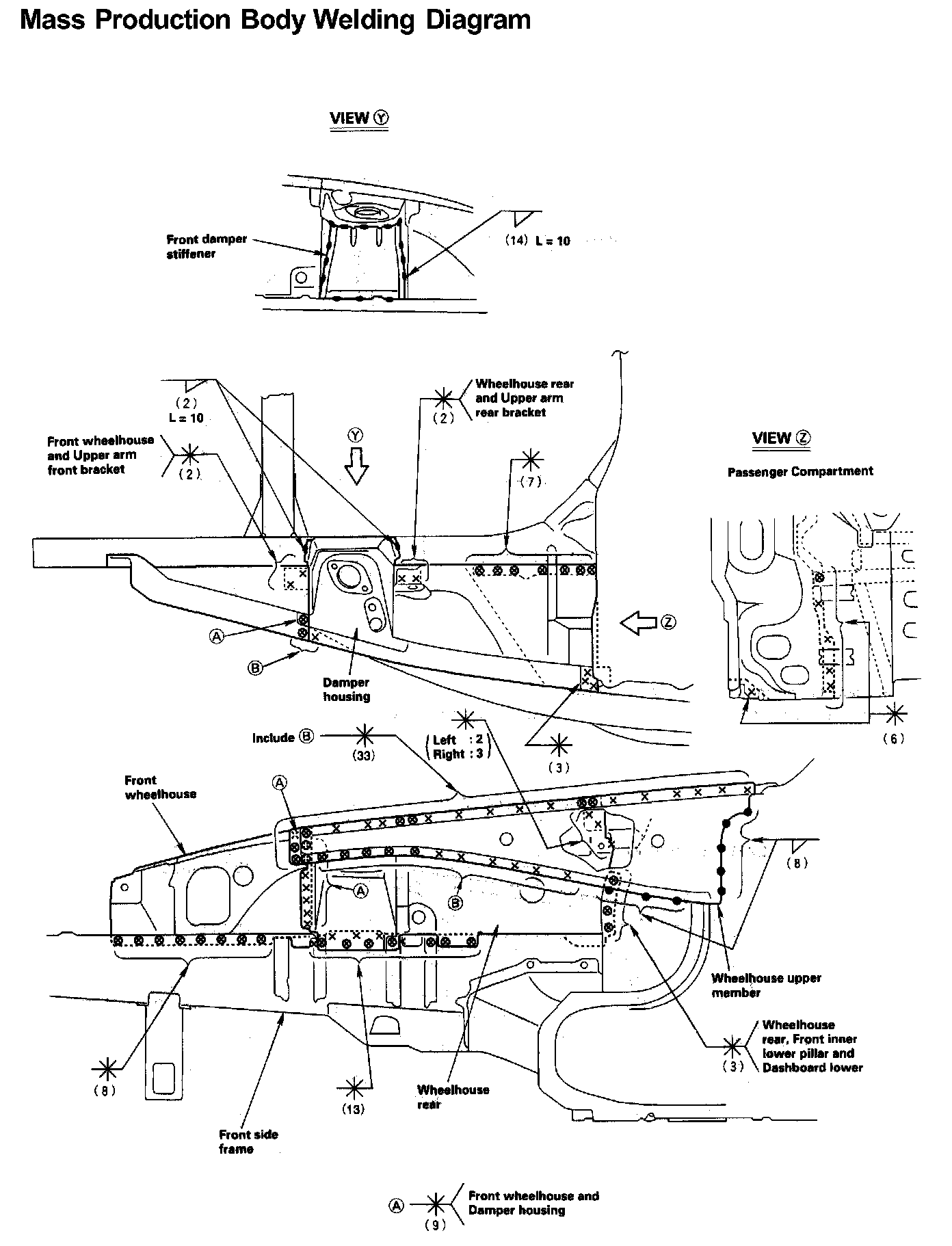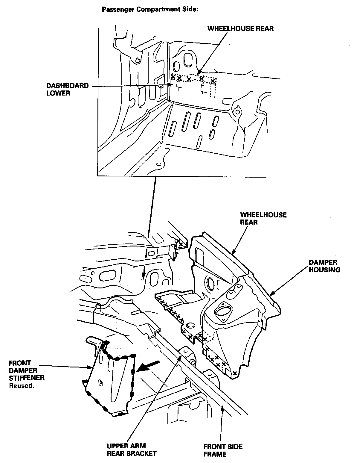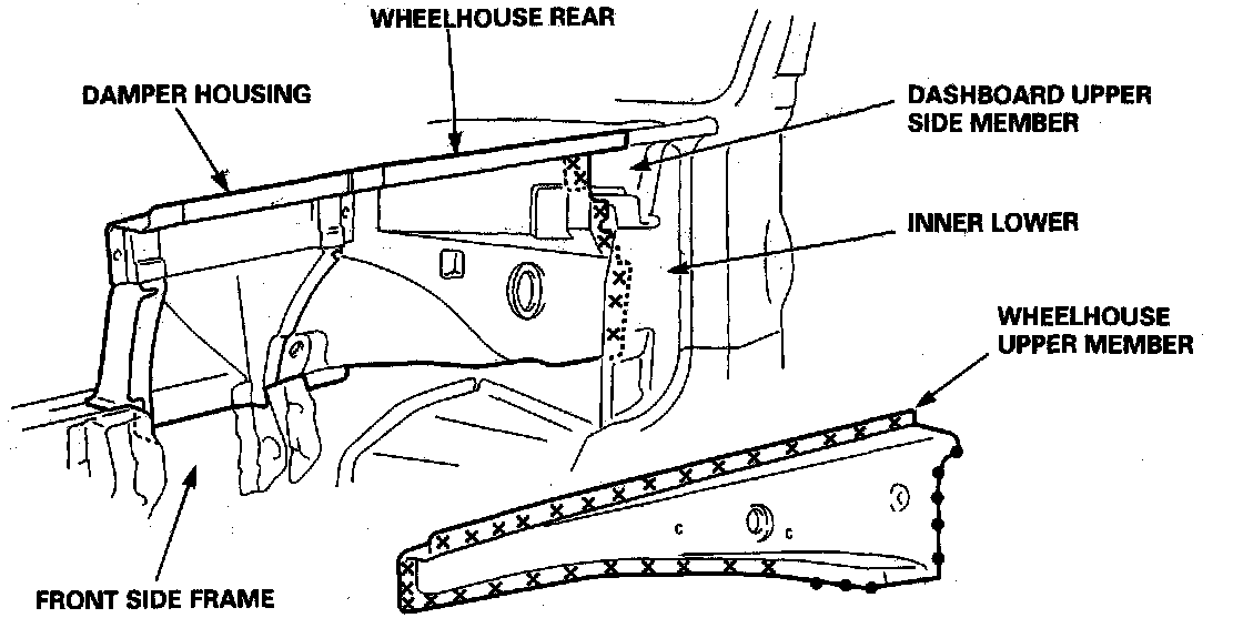 - Weld the damper housing, wheelhouse rear and front damper stiffener.