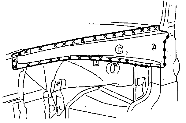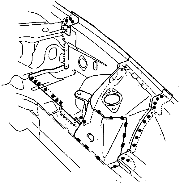 - From passenger compartment side, plug weld the holes in the dashboard lower and wheelhouse rear.