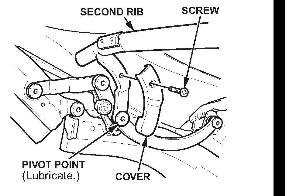 *7. Remove the covers from the left and right pivot point of the second rib, then lubricate the pivot points with white lithium grease spray.