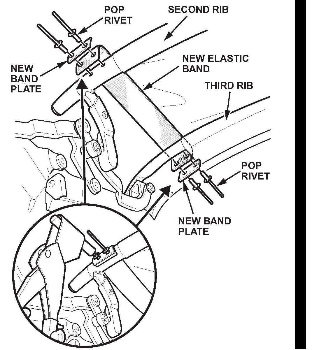 12. Install the new elastic bands with the new plates, and secure them with new pop rivets.*