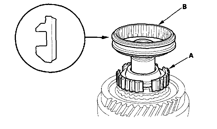 4. Install the synchro spring (A) and the double cone synchro (B) as shown.