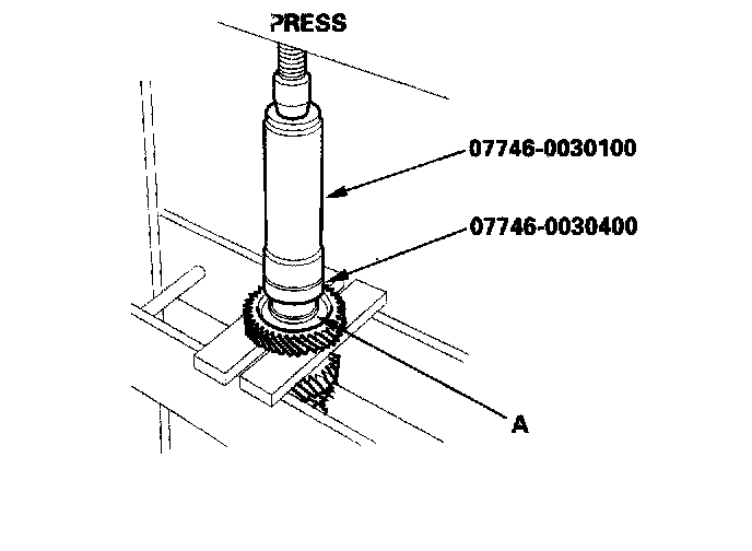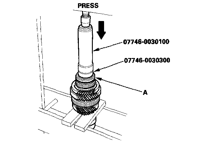 11. Securely clamp 4th and 5th gears in a bench vise with wood blocks (A).