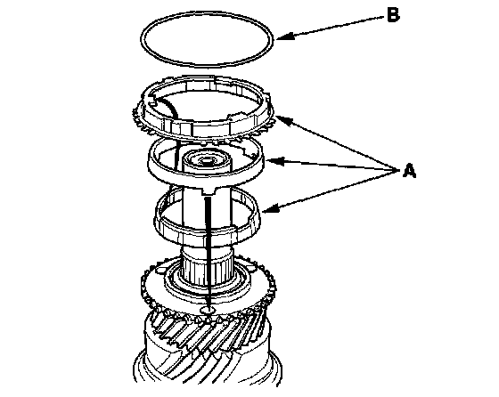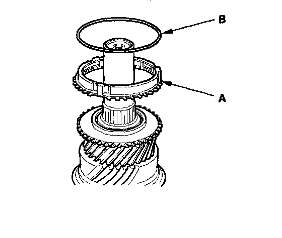 6. 2000-2003 models: Install the double cone synchro (A) and synchro ring (B).