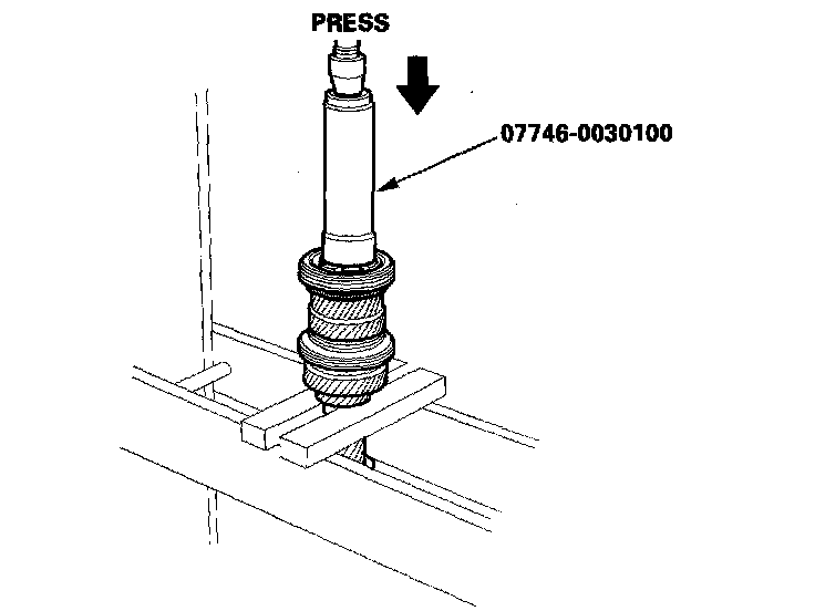 4. Press the 5th/6th synchro hub using the special tool as shown. After installing, check the operation of the 5th/6th synchro hub and sleeve.