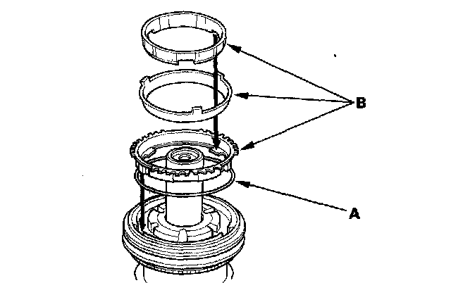 11. 2004-2006 models: Install the synchro spring (A) and synchro ring (B).
