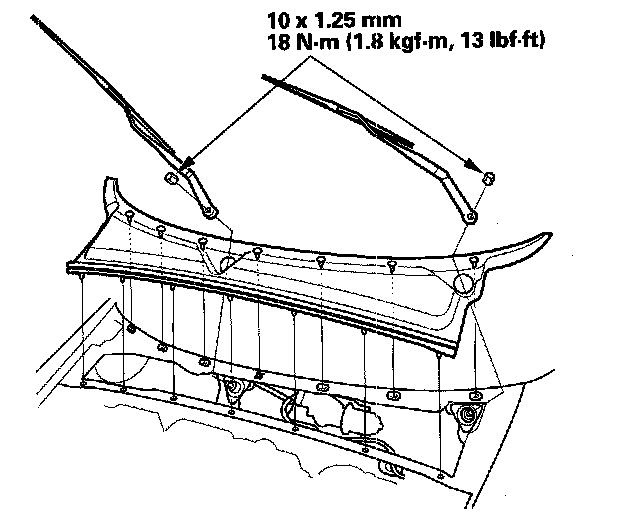 Wiper Motor Replacement1. Open the hood, and remove the cap nuts and the wiper arms.