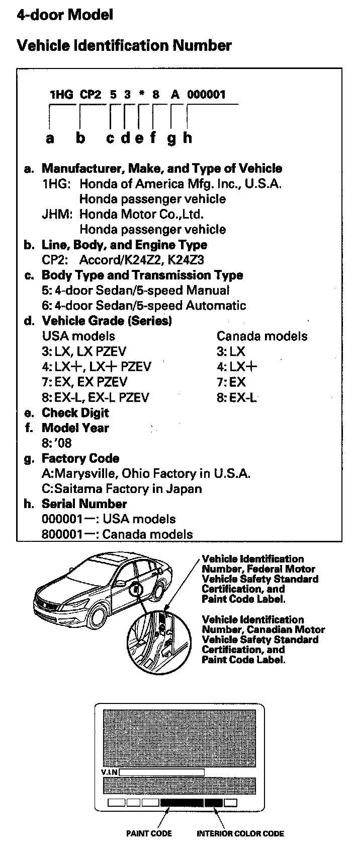 Vehicle Identification Number (4-door Model):