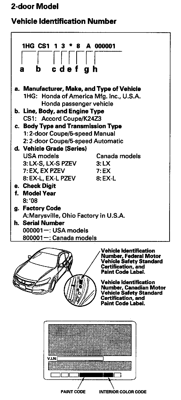 Vehicle Identification Number (2-door Model):