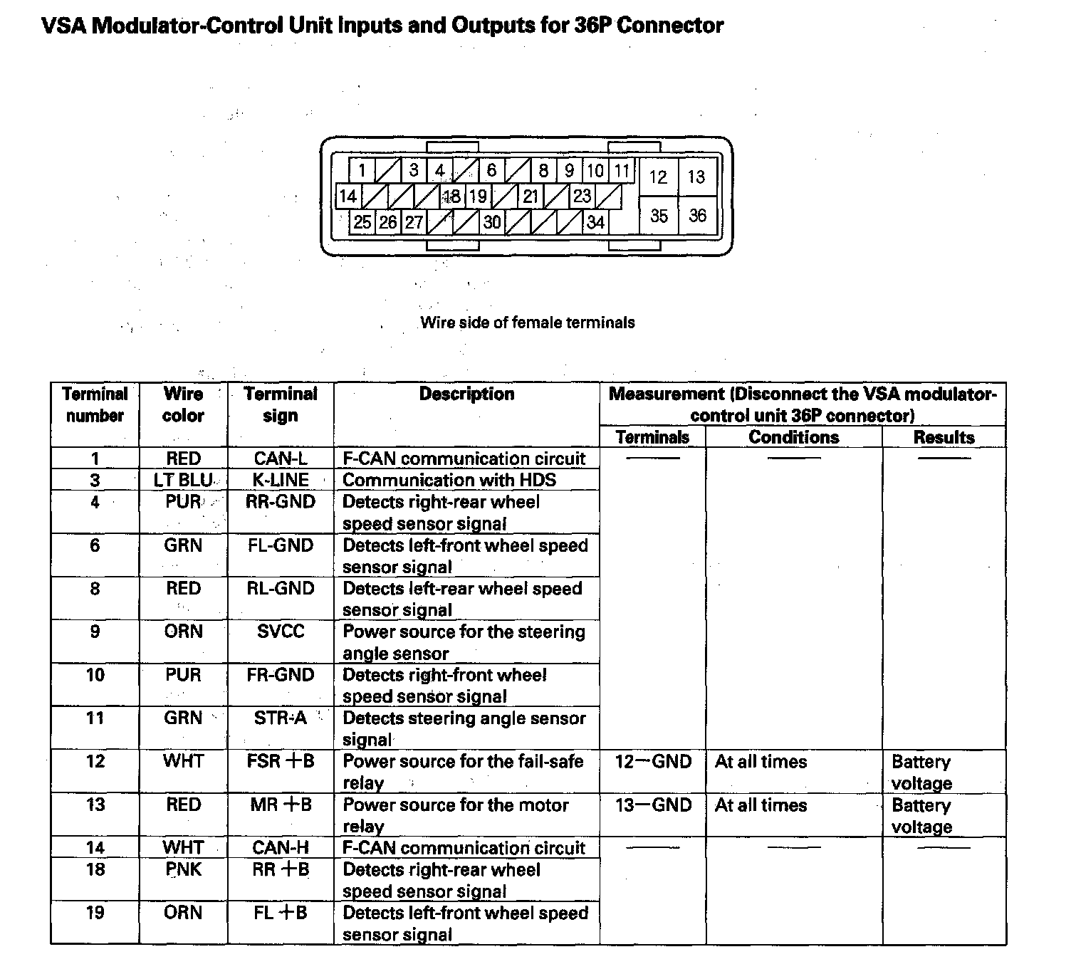 VSA Modulator-Control Unit Inputs and Outputs for 36P Connector (Part 1):
