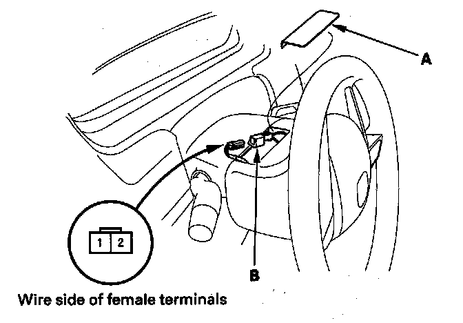 2. Disconnect the horn switch 2P connector (B).