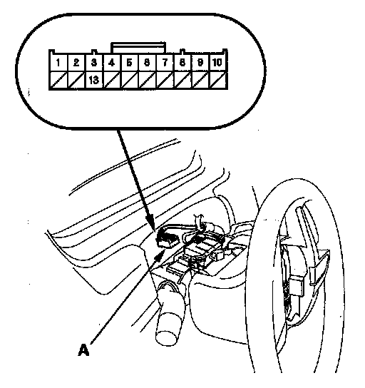 7. Disconnect the cable reel subharness 20P connector (A).