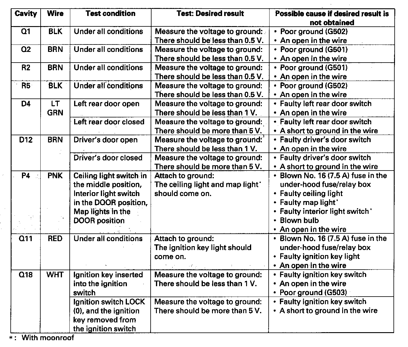 4. Reconnect the connectors to the driver's under-dash fuse/relay box, and make these input tests at the connectors.