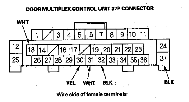 10. Disconnect the 37P connector from the door multiplex control unit.