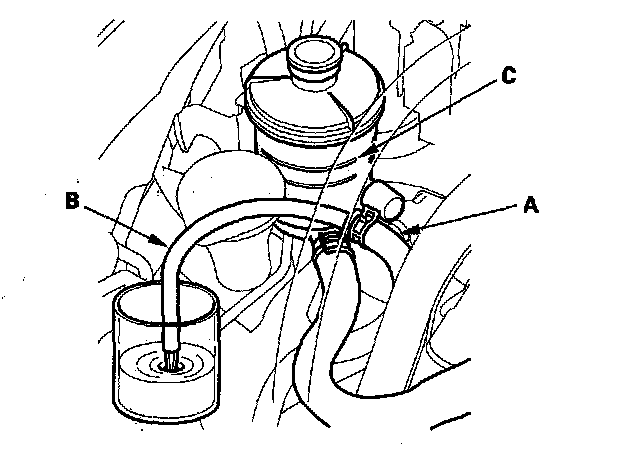 5. Fill the reservoir to the upper level line (C).