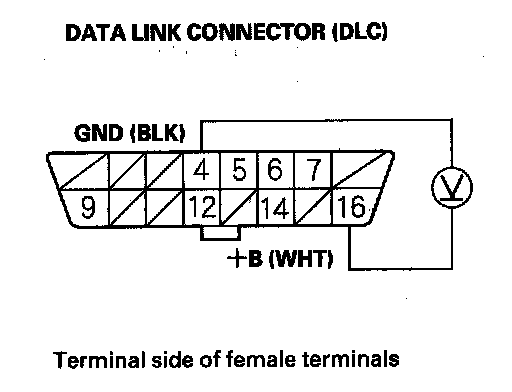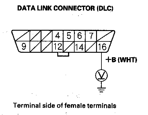 24. Measure voltage between DLC terminal No. 16 and body ground.