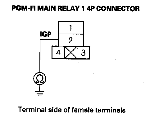 43. Check for continuity between PGM-FI main relay 1 4P connector terminal No. 2 and body ground.