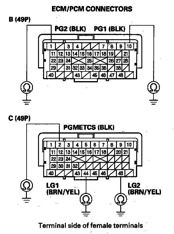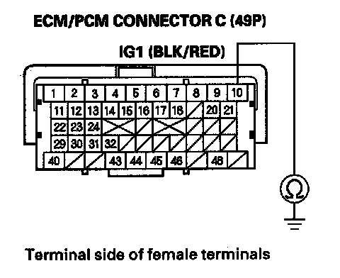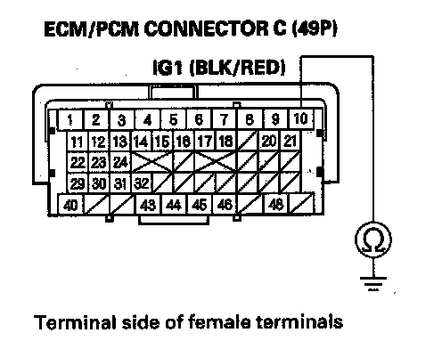 48. Check for continuity between ECM/PCM connector terminal C10 and body ground.