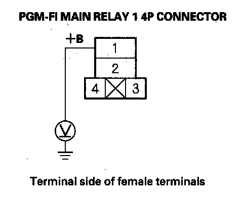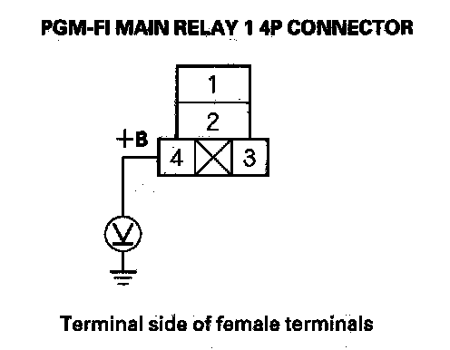 63. Measure voltage between PGM-FI main relay 1 4P connector terminal No. 4 and body ground.