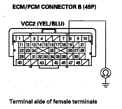 74. Check for continuity between ECM/PCM connector terminal B19 and body ground.