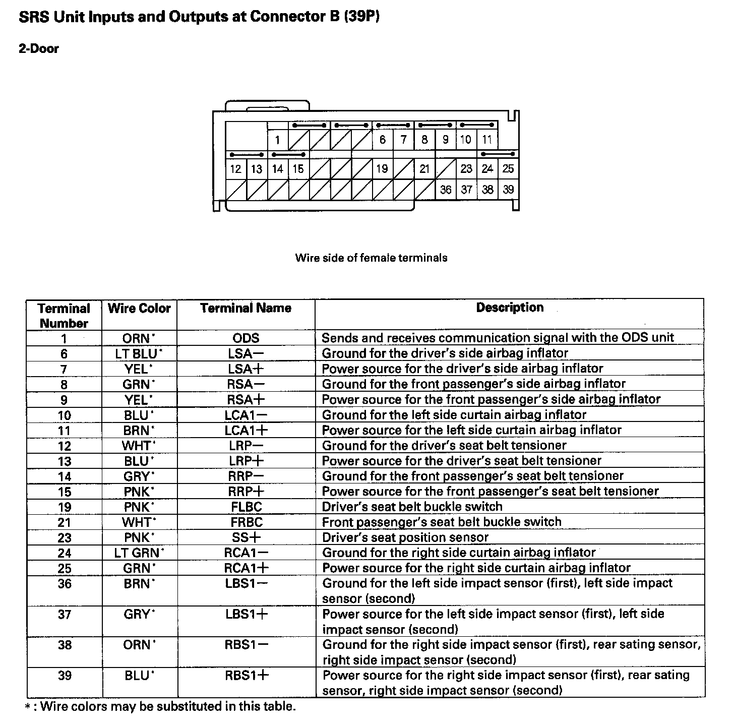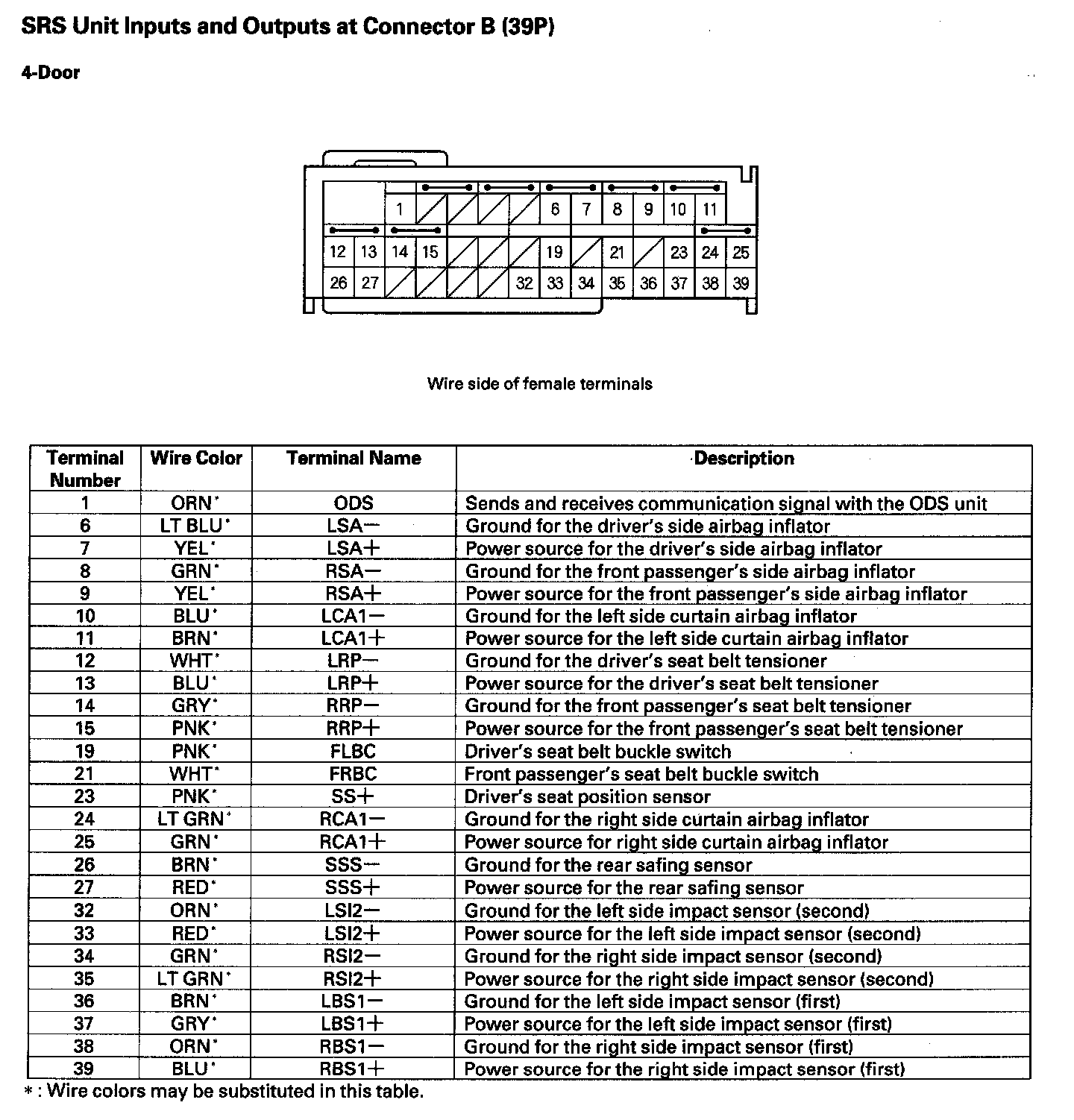 SRS Unit Inputs And Outputs At Connector A (39P):