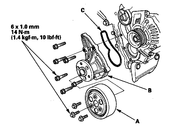 If the pulley bolt or crankshaft are new, tighten the bolt to 177 N-m (18.0 kgf-m, 130 lbf-ft), then remove the bolt and tighten it to 49 N-m (5.0 kgf-m, 36 lbf-ft).