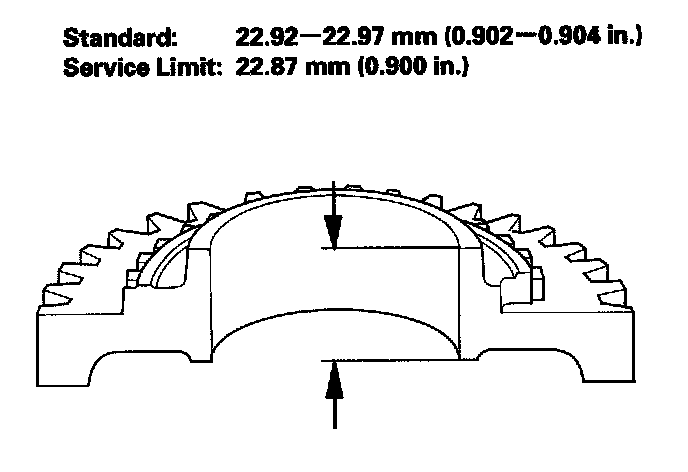 ^ If the thickness is less than the service limit, replace 2nd gear.