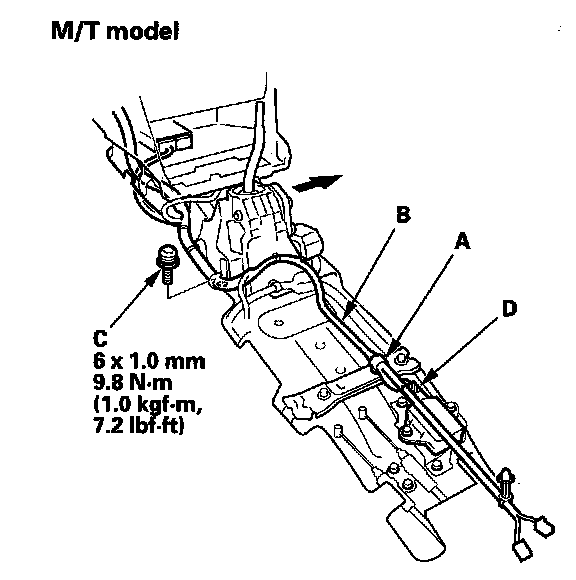 5. M/T model: Remove the bolts, then move the shift lever housing as needed.