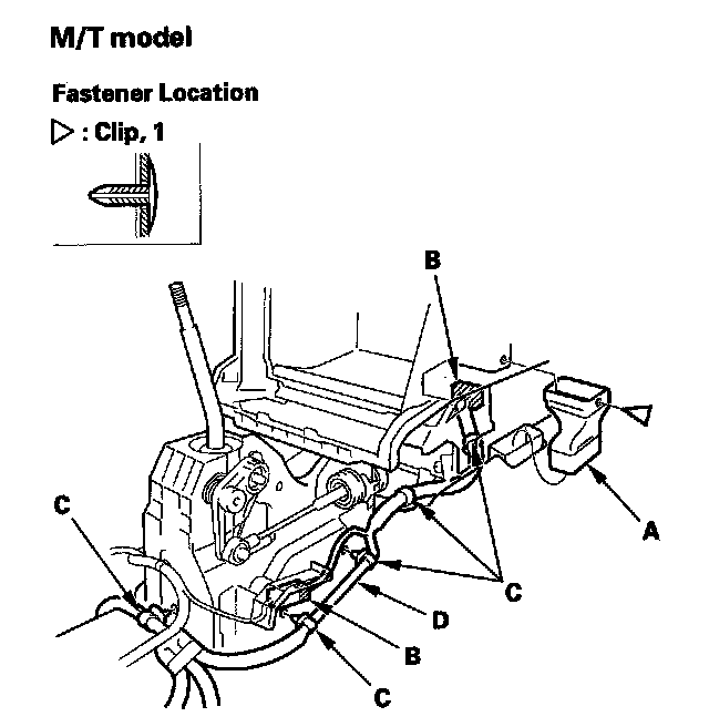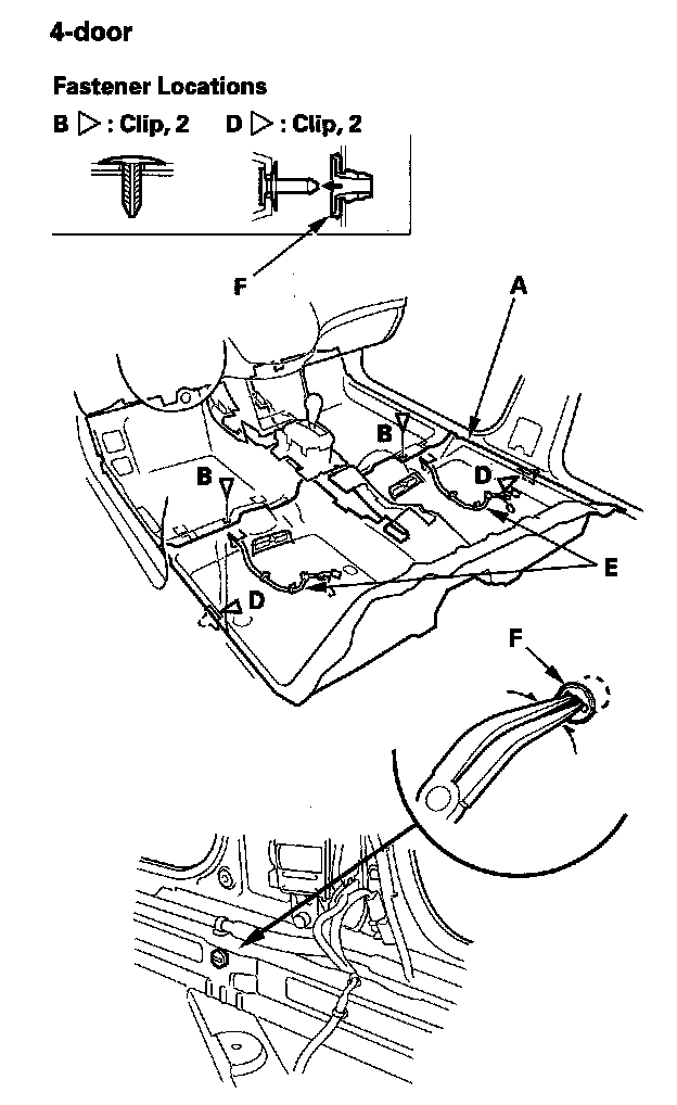 NOTE: Replace the clip (D) and the grommet (F) as an assembly with a new one.