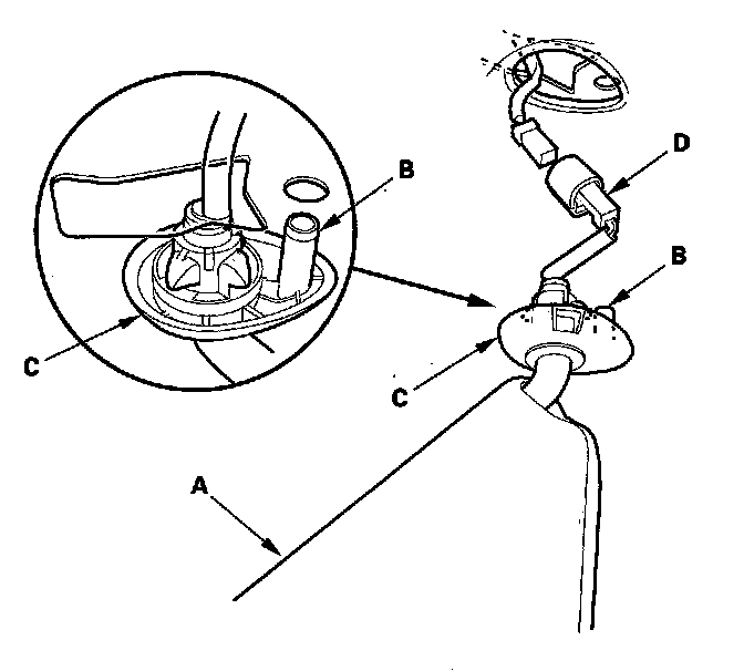 4. Turn the holder (A) 45° counterclockwise, and remove it from the holder grommet (B) by pulling the holder down.