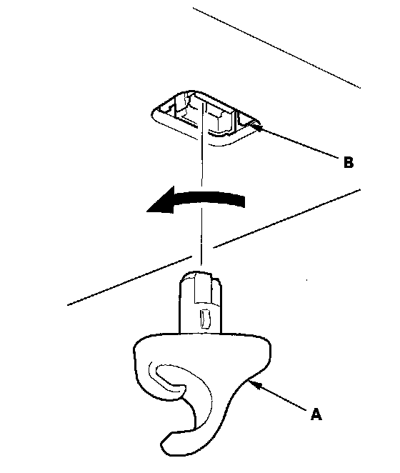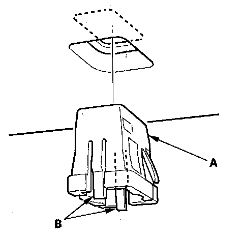 - Any cracks in the sunvisor bracket cover (B)
