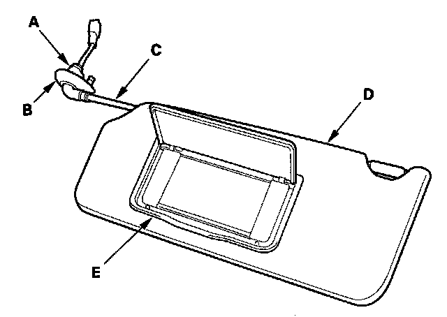 - Any cracks in the sunvisor base (D)