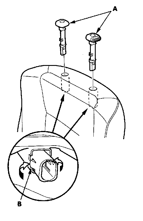 10. Pull out the head restraint guides (A) while pinching the tabs on the end of the guides (B), and remove them.