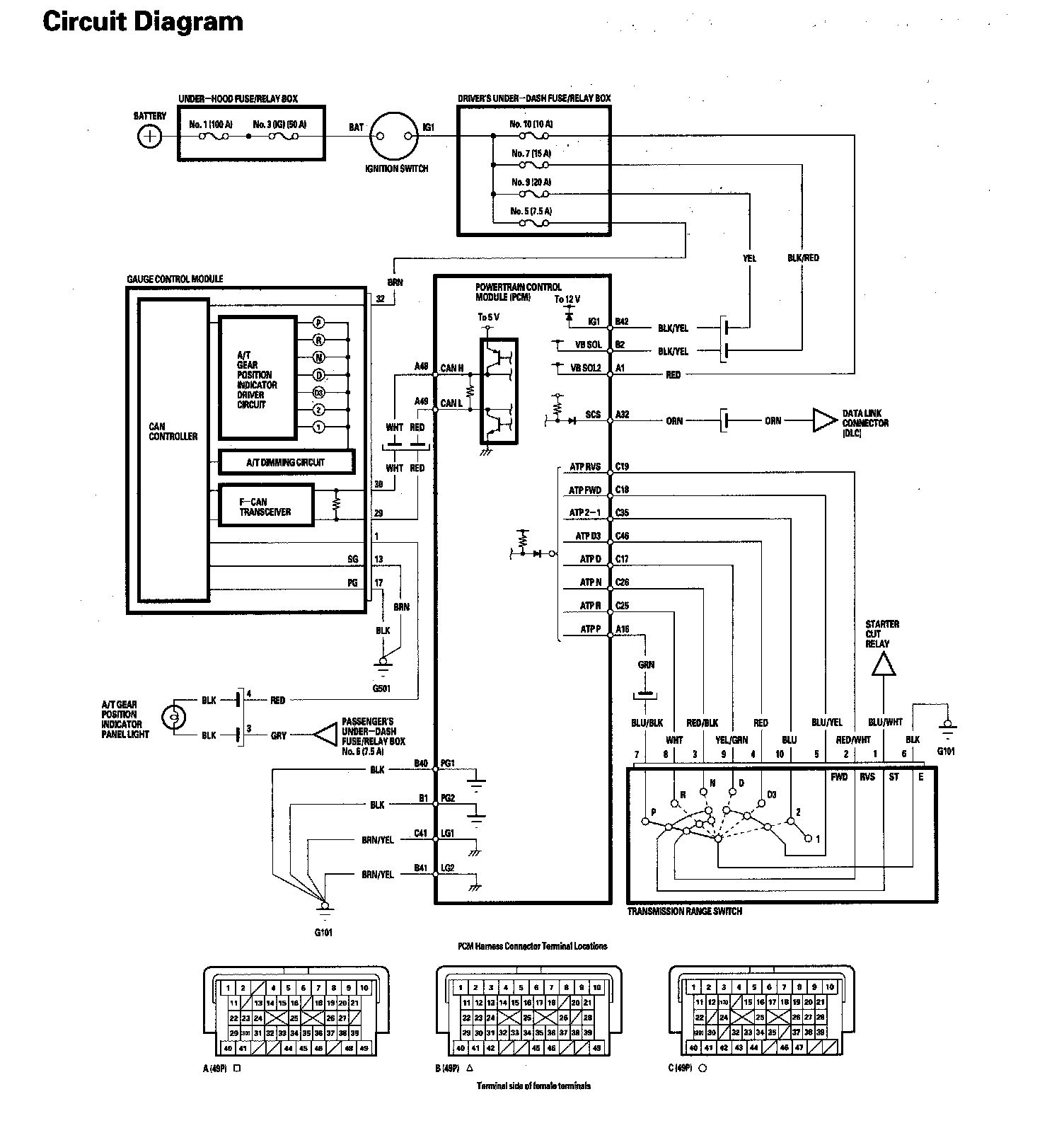 A/T Gear Position Indicator Circuit Diagram V6-3.5L: