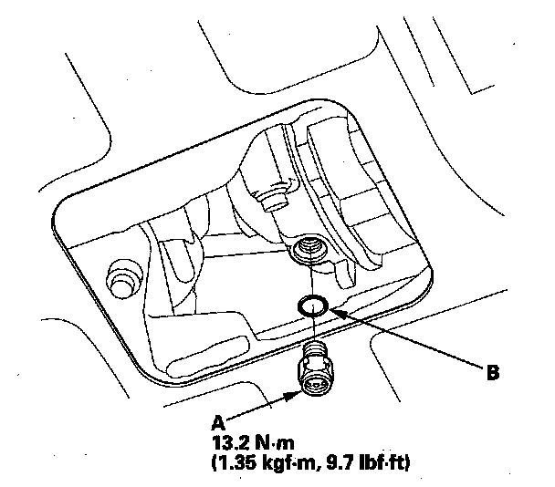 3. Remove the relief valve (A) and the O-ring (B). Plug the opening to keep foreign matter from entering the system and the A/C compressor oil from running out.