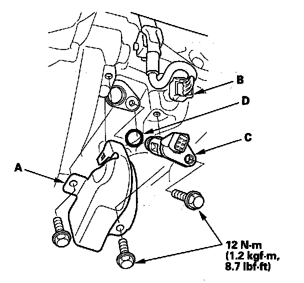 5. Install the parts in the reverse order of removal with a new O-ring (D).