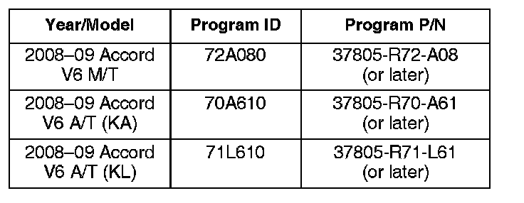 Update the PGM-FI software with the HDS. Refer to Service Bulletin 01-023, Updating Control Units/Modules.