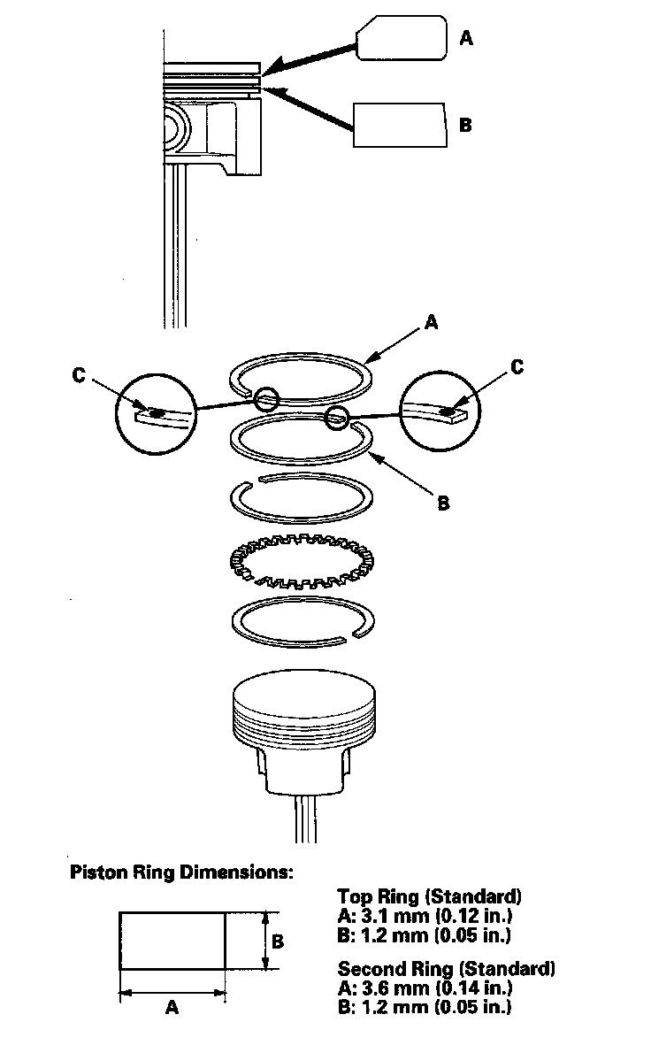 Top and 2nd ring grooves 1.2 mm (0.05 in.) wide