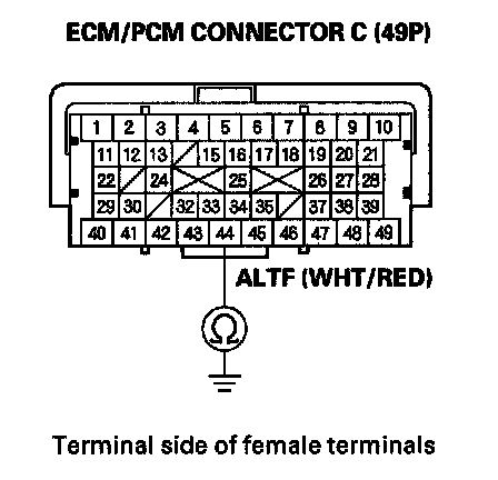 8. Check for continuity between ECM/PCM connector terminal C44 and body ground.
