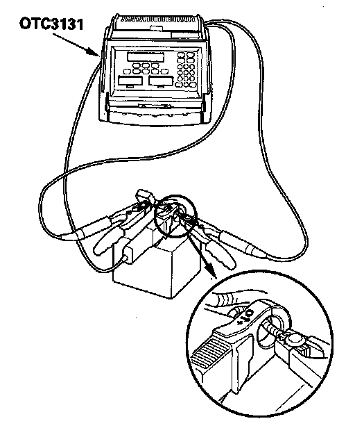 2. Connect the alternator, regulator, battery & starter tester (OTC3131) to the battery as shown.