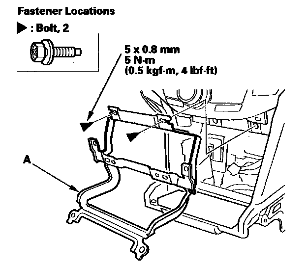 3. With navigation system: Remove the bolts, then remove the center pocket frame (A) from the dashboard.