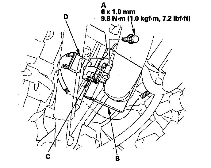 NOTE: While separating the TPMS control unit from the bracket, release the hook (C) on the TPMS control unit using a flat-tipped screwdriver (D), and push it up to remove the bracket.