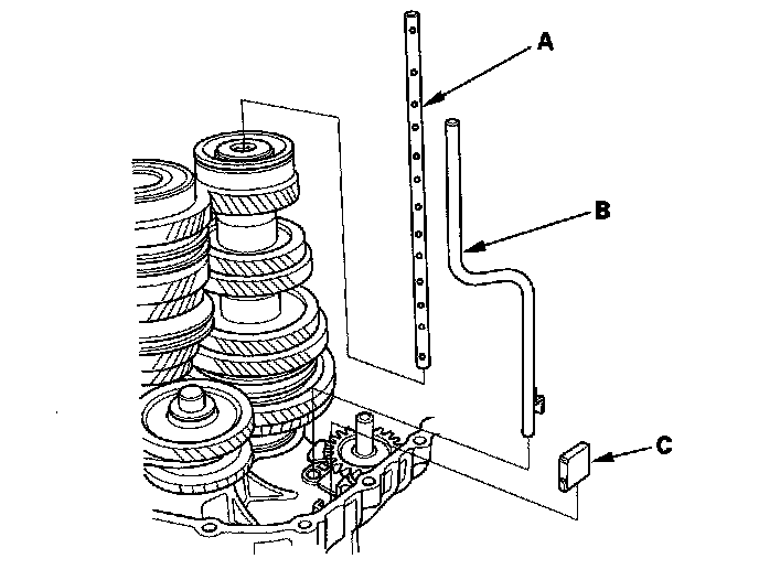 10. Remove oil guide pipe A, oil guide pipe B, and the magnet (C).