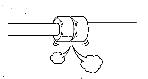 1. With the ignition switch in LOCK (0), inspect the A/C components, pressure lines and hoses for stains that may indicate a refrigerant or a compressor oil leak.