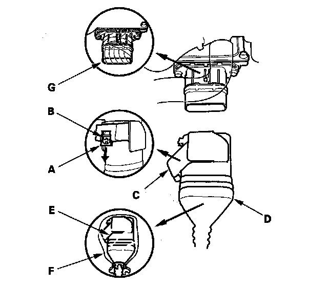 - Cover the disconnected connector (E) with a plastic bag (F), and wrap the motor power cable terminals with tape (G).