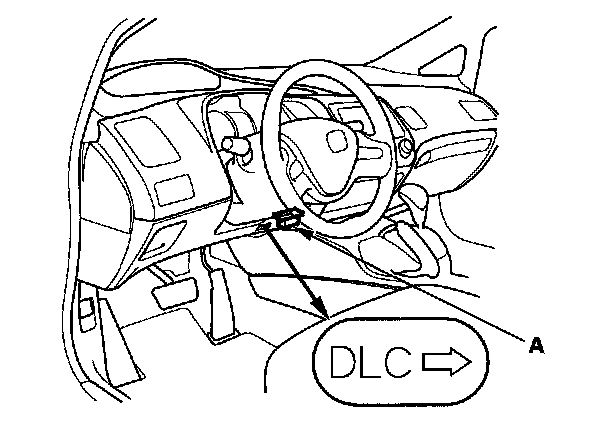 2. Connect the HDS to the data link connector (DLC) (A) located under the driver's side of the dashboard.