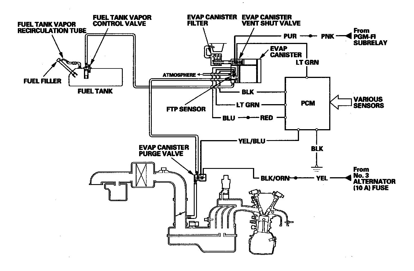 The EVAP controls minimize the amount of fuel vapor escaping to the atmosphere. Vapor from the fuel tank is temporarily stored in the EVAP canister until it can be purged from the canister into the engine and burned.