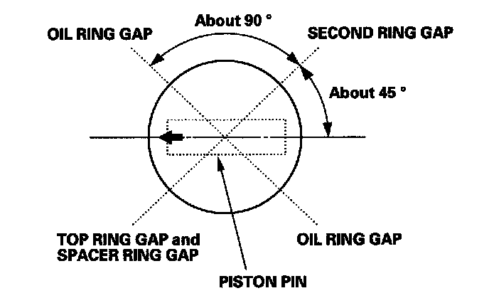 8. Position the ring end gaps as shown: