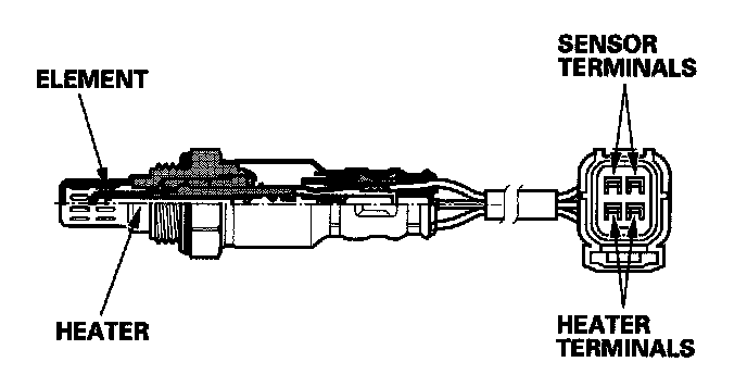 Secondary Heated Oxygen Sensor (Secondary HO2S)The secondary HO2S detects the oxygen content in the exhaust gas downstream of the three way catalytic converter (TWC), and sends signals to the PCM which varies the duration of fuel injection accordingly. To stabilize its output, the sensor has an internal heater. The PCM compares the HO2S output with the A/F sensor output to determine catalyst efficiency. The secondary HO2S is located on the TWC.