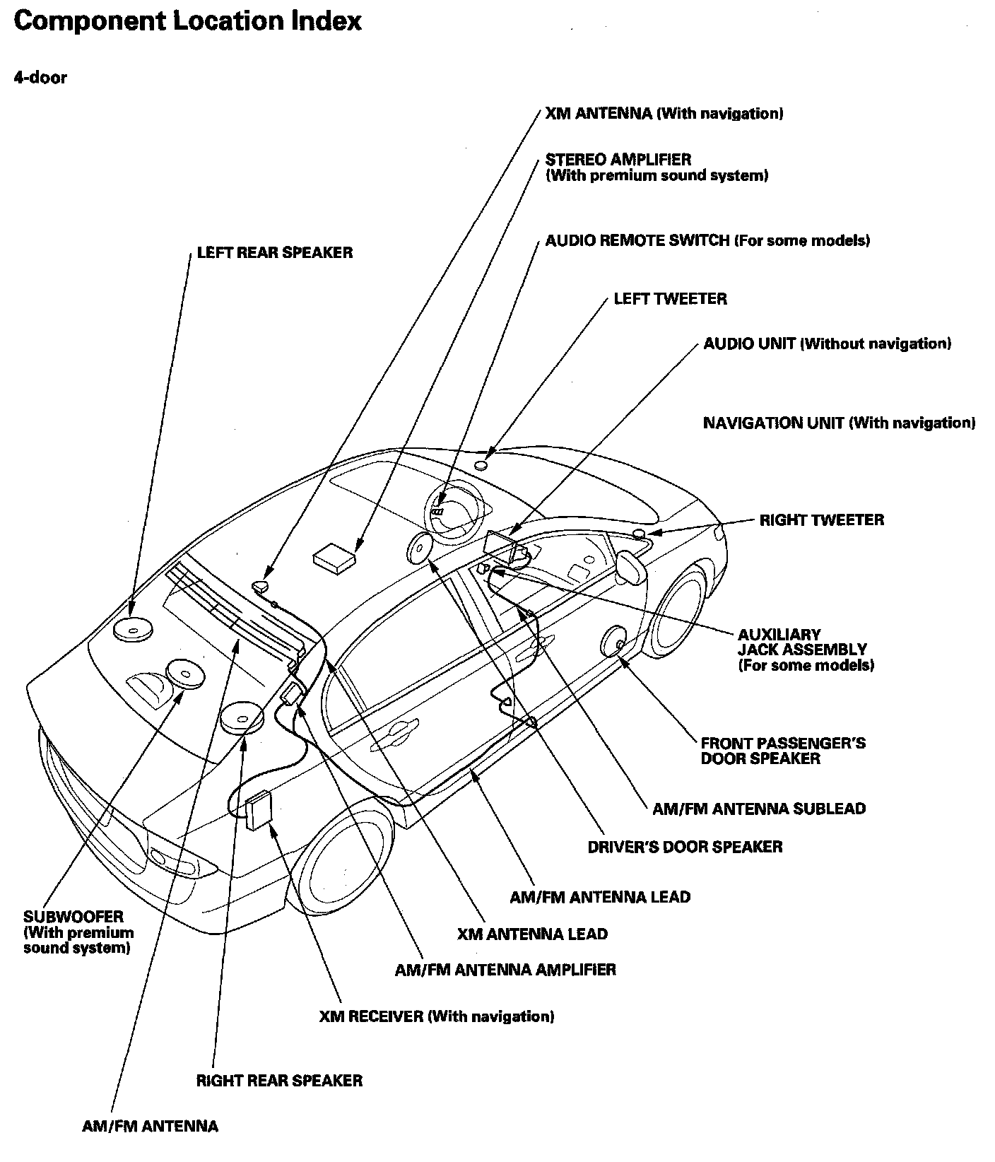 Audio System Component Location Index: