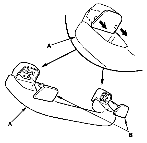 2. While pinching the clips (A), release the hooks (B), then remove the grab handle (C).